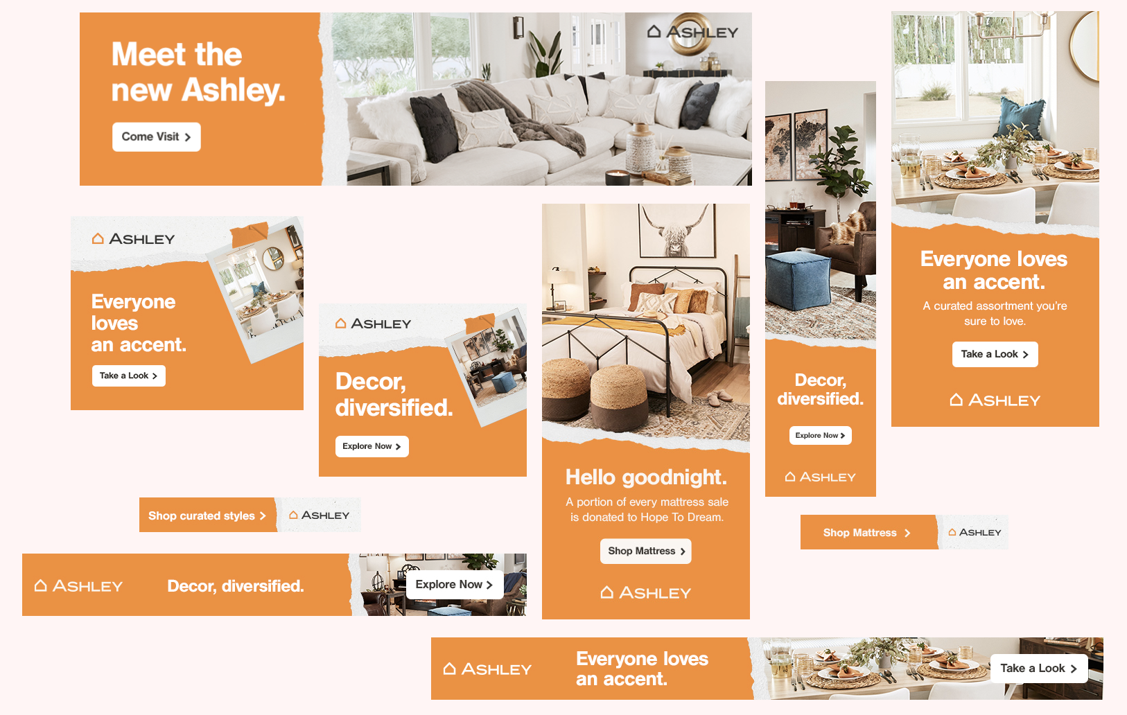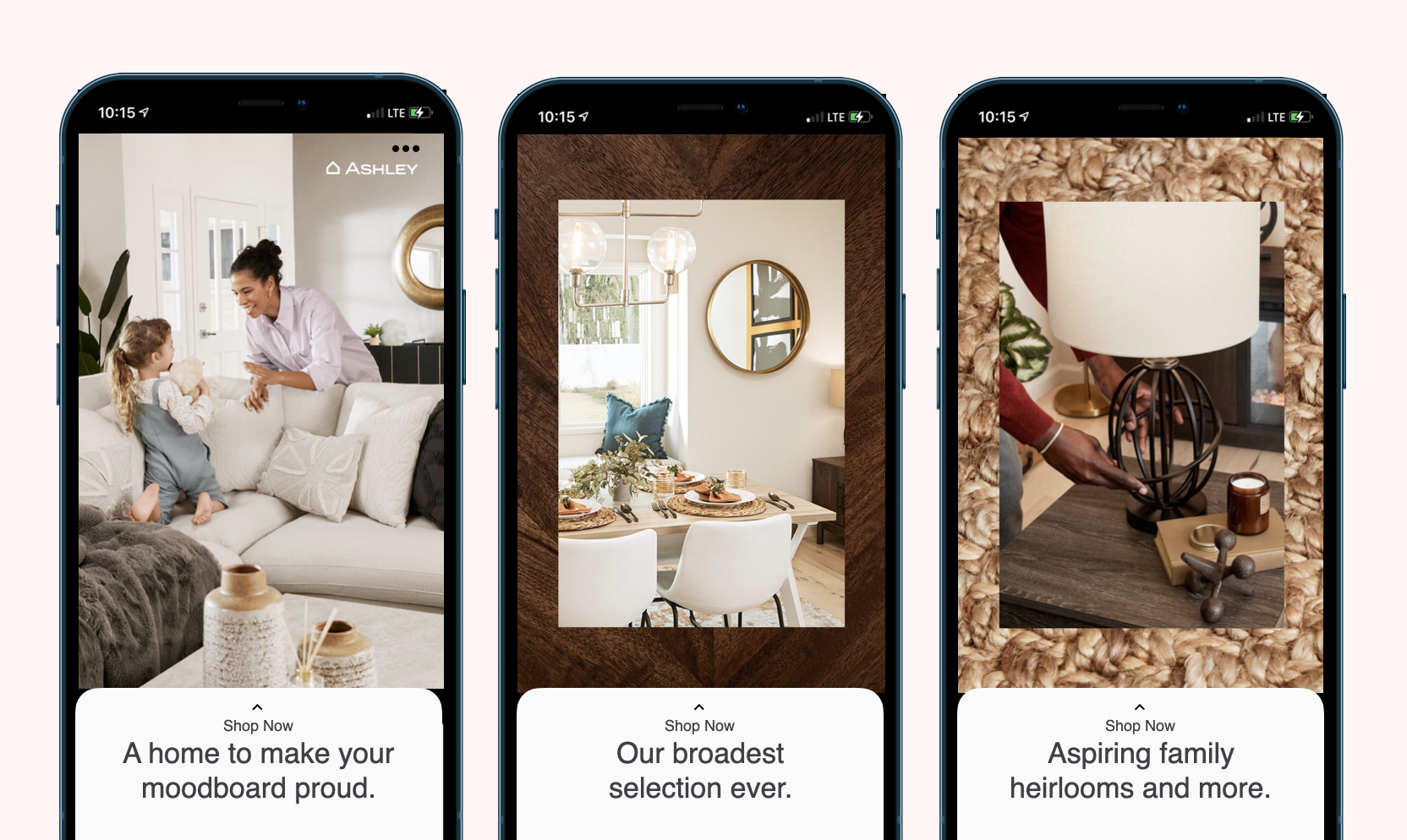 When young people thought about places to shop for furniture, Ashley Home Furniture was likely not one of them. Oversized sofas. Big leather armchairs. You get the idea. The 360 campaign borrowed from the culture of online trends and style influencers to encourage new shoppers to “manifest their moodboard” and shop from their massively upgraded collections.